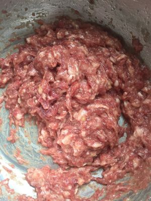 肉馅里放一个蛋清,盐,生抽,把高汤分次打到肉馅里,打到高汤和肉馅充分融合
