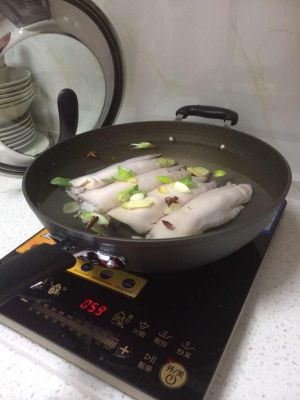 猪蹄焯水冲净再重新做一锅水,加入葱姜、大料、桂皮、香叶、干辣椒、盐、鸡精、花椒粉、酱油、老抽、糖等调味料炖一个半小时左右(如果是高压锅可根据高压锅提示而设定时间)尽量时间久一些,用筷子能扎透猪蹄则表示炖好了。然后重起锅倒入油、酱把猪蹄酱一下,收汁后就完成了。