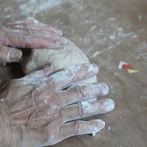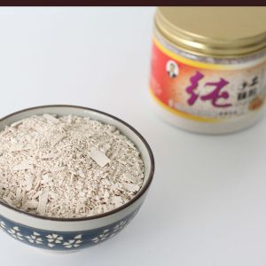 准备纯藕粉,速溶藕粉或者其他的兑假藕粉就不要试了,做不出来味道跟劲道,大概200-300克左右,如果是手工的藕粉,会有颗粒状,建议可以用擀面杖擀碎,便于和面。
