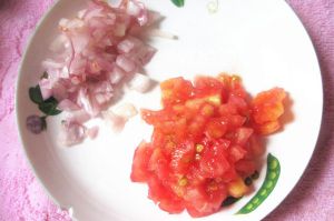 洋葱切丁、番茄去皮切丁