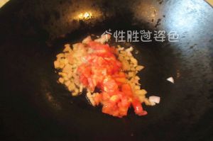 锅内倒油,洋葱爆香,倒入番茄