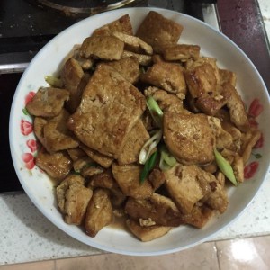 盖上锅盖焖煮 直到汁收干了 收汁期间要轻轻翻炒几次 不然豆腐就碎了