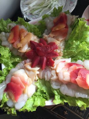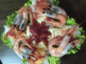 准备好阿根廷红虾、甜虾、北极贝适量。先解冻