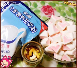 把棉花糖放入小碗中备用,放入微波炉加热到融化,注意哦,过程中要注意不要让糖弄得哪里都是,建议在傍边观察状态。