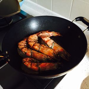 锅内放少许油,将大虾下锅煎熟,看到肉质变白。