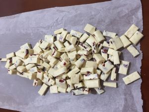 等牛轧糖不烫手时便可以开始切条,大小可以根据自己的喜好来决定。