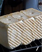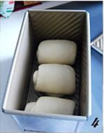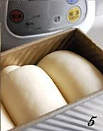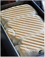 烤好后取出吐司模,这个是刚拿出来的样子(图6)。后来在贝太上看贴,有人说自由jj建议烤好后在烤箱中放置烤箱降温比较好。我是后看到的,下次试试