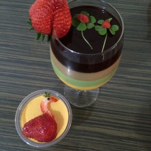 布丁粉用沸水冲开,搅拌均匀,温度降低后放入冰箱冷藏。