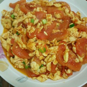 西红柿不要切太大块,炒好鸡蛋盛出就可以倒西红柿进去炒了,中火炒出汁后就可以倒入鸡蛋了,菜翻两下就要加盐和糖咯,因为我不喜欢太甜,盐和糖比例2:1,看个人口味加哈