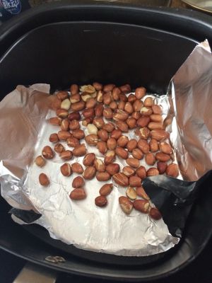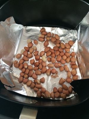 之所以放锡纸是比较懒,不想刷锅,不想用锡纸。可以把花生直接倒入炸篮里