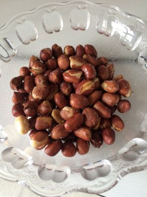 炸熟的花生 撒上一层盐 晾凉就可以吃了!