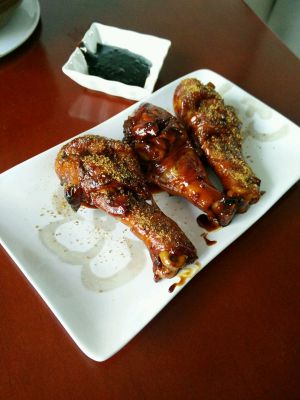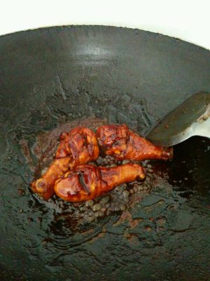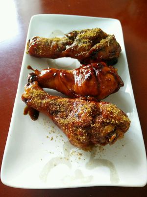 煮到汤汁有点浓稠,开盖小火一边煮一边用铲子把汁淋在鸡腿上,煮到剩余一点稠稠的汁关火装盘,洒上孜然粉ok,把剩下的蜜汁剩出,吃口鸡腿粘点蜜汁,好吃到已经把减肥抛到九霄云外了哈哈