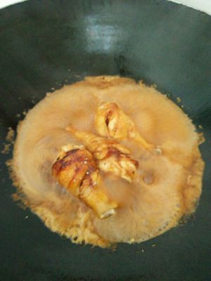 加入酱油,老抽,糖,一点点盐,再倒入一碗水大火烧开,盖上盖转中小火慢慢炖熟(中途翻面)