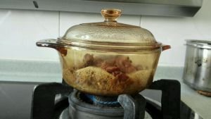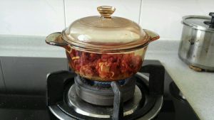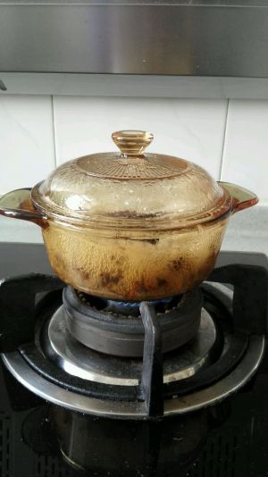 准备好康宁锅。因为是无油的,这个锅可以做无水无油烹饪的。这个锅是首选。