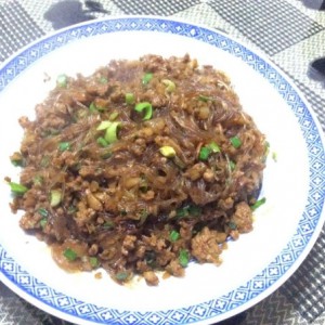 放入粉丝,翻炒均匀,让粉丝把锅里水吸干即可。