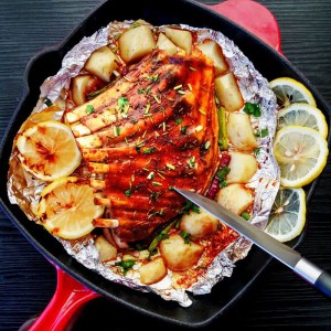 把葱姜蒜除净,单独用锡纸将羊排整个包住,放在烤盘上。入预热好的烤箱中层,上下火180度,烤40分钟左右。快烤好的时候,洗净削皮一个土豆,切块备用