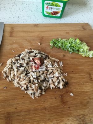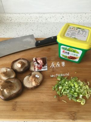准备好香菇,葱花,肉丁,豆瓣酱,个人比较喜欢六月香豆瓣酱