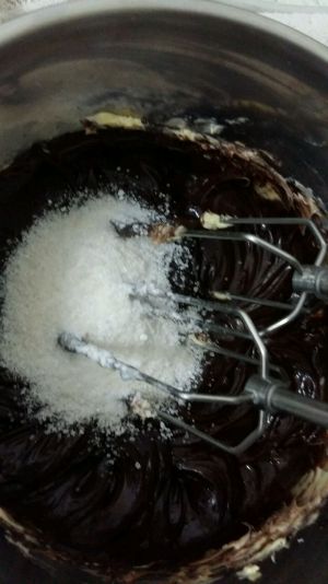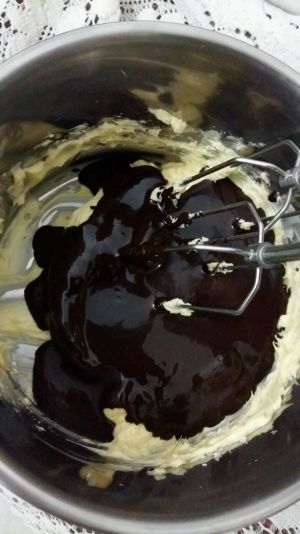 面粉与可可粉过筛拌匀(黄油和巧克力提前隔水软化,水温不要太高,四十度左右就可以了)