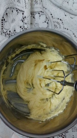 将软化好的黄油用电动打蛋器低档打至顺滑就行,大概半分钟,不要打太久,手动打蛋器也可以,打到像图里一样的状态就行