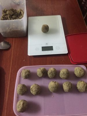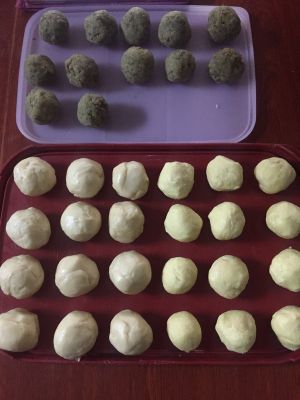 将之前准备好的豆沙馅揉成小团12小份,每个15克,用保鲜膜盖好