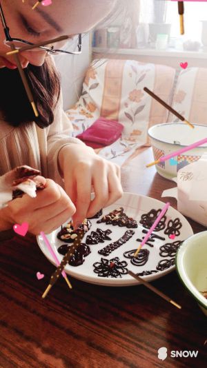 做了好多巧克力!现在我和姐姐去超市再也不眼馋那些巧克力了哈哈哈!