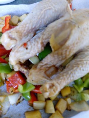 烤箱预热170,烤50分钟左右,每20分钟翻一次,刷之前的腌料,腌料加点蜂蜜会上色更好。烤的时间可根据烤箱脾气调整。