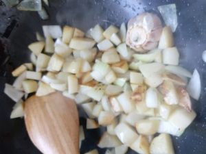 加入土豆翻炒到软,微黄