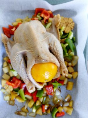 鸡肚子里也塞入菜