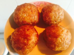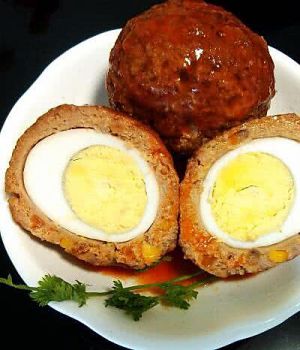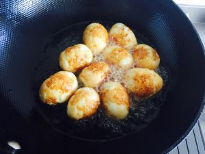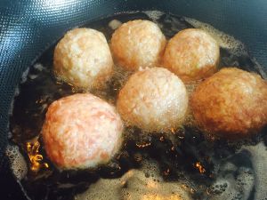 将肉馅包住炸好的鸡蛋,揉成圆形