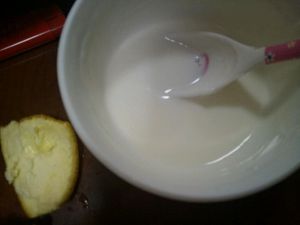 把酸奶倒入碗里面,加适量的盐,我加了小半勺,加完之后尝一尝,稍微咸一点比较好,要不然会腻。