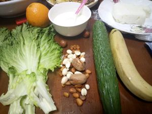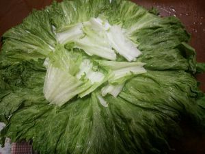 生菜切成想要的大小,黄瓜削皮,切成一口大小的块