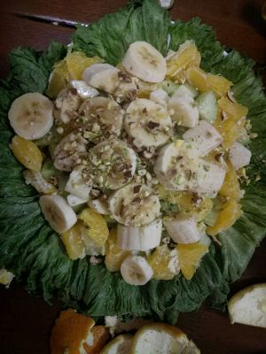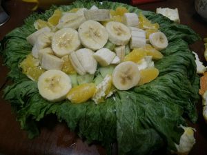 香蕉切块,切的和黄瓜差不多大就行,我还留了几片摆盘用。