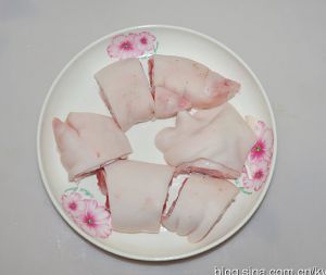 猪蹄洗净跺成小块。