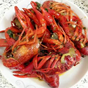 2.醋泡好小龙虾后清水沥干下锅爆炒