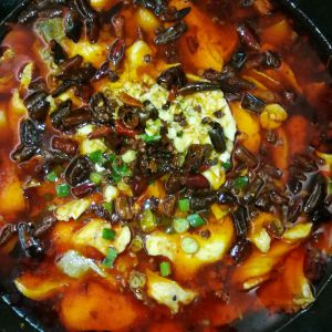 干辣椒段,花椒,大葱,姜片小伙爆香