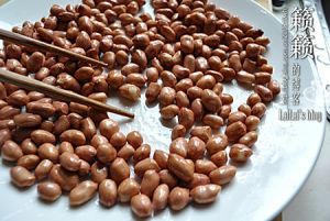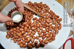 取一粒花生米尝尝,味已断生即可。趁热浇点白酒拌匀。呵呵,不需要用特别好的白酒二锅头就行。