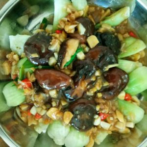 锅烧油,放入姜,辣椒,大蒜,酱油,炒一分钟,加入耗油,,淀粉加水收汁,一分钟后OK,倒入盘中