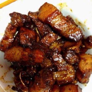 最后快好的时候加入鸡精,大火翻炒不断收汁上色,汤汁粘稠均匀的裹在肉上!OK!注意最后一定看住锅,别糊锅,稍微剩一点汤即可!这样作出的红烧肉不仅鲜甜软嫩,而且绝对一点不肥不腻,肥肉比瘦肉好吃!即便冷了后,肥肉也保持透明不腻无肥油味,碗底绝无白白黄黄的肥油,只飘着透明液态的油,肉中留有茶香!