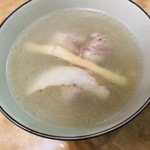 把排骨沙参玉竹放锅里,加入足够的清水,大火烧混后转小火煲半小时