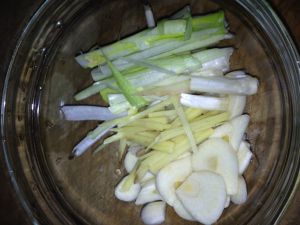 葱和姜切丝,蒜切片