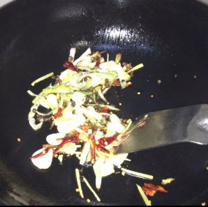 锅烧热放油,油热放葱姜蒜和辣椒花椒爆香!