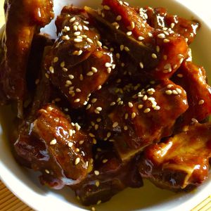 然后倒入盖过排骨的热水,再倒入调好的糖醋汁,闷煮20分钟