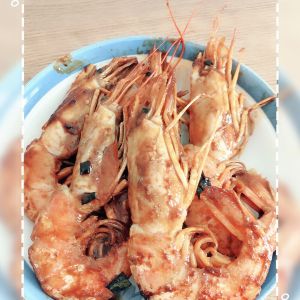 锅里余油加入一茶匙鲜贝露、一茶匙番茄酱、一茶匙水,滚开后再倒入虾,因为番茄酱里面含淀粉,所以会有粘稠的感觉,要是觉得不水水的,可以自己略微勾芡。