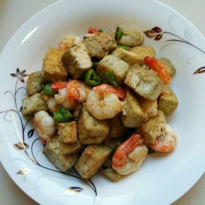 差不多第二面黄后放入虾仁,此时你可以用小火,免得烫手