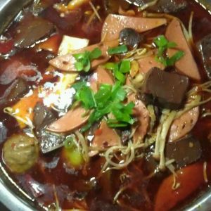这时可以把火腿肠金针菇豆芽等入锅煮,待菜煮短生,就可以加猪血和毛肚,大火煮开即可