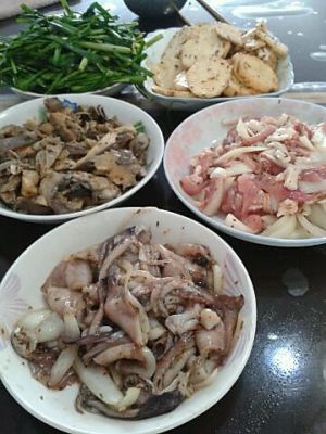 最好荤素搭配,推荐地瓜片和烤韭菜,别有一番风味。另外鱿鱼,蘑菇,各种肉,都可以用来烤着吃。