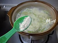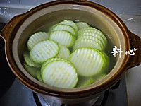 将猪骨汤倒入砂锅中,煮滚,放入西葫芦。
