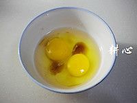 将鸡蛋嗑入碗中,倒入适量的鱼露。
