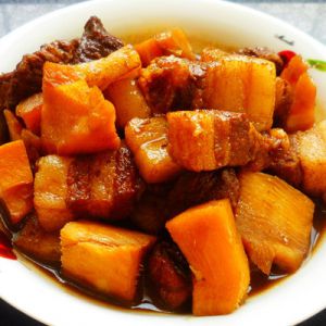 4.小火慢炖一个小时后,肉已经香浓软糯了, 加入煮过的春笋,小火继续炖30分钟,炖至入味,汤汁渐近收干,起锅装盘。