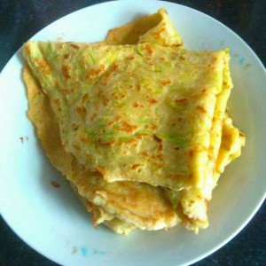 顺时针方向迅速把面糊摊平,摊的薄一些。